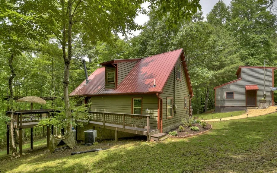 "Serenity in the Woods"...w/Spacious Porches, Decks (Arbor) & "Elevated Walkway" to a Screened Gazebo (Hot Tub ready). Plenty of Outdoor Space (over 500 Sq ft) to Enjoy "Nature" at your Doorstep. "ALL WOOD" CHALET w/a Circular Driveway leading to a (20X20) 2-Story DETACHED GARAGE storage for your BOAT, ATV's etc. w/an Interior staircase to Upper Level (unfinished) BONUS RM. Amazing Curb Appeal & Fully FURNISHED. (2) New Extended Open Decks (Side & Back w/Gas Flame "Fire Centerpiece"). New Metal Roof on Cabin AND Garage. Recently Upgraded Kitchen w/Raised Panel OAK & Glass Cabinets, GRANITE Countertops, Gas Range & SS Appliances (w/Bead-Board Backsplash).New TILE Floors at Entry, Kitchen & Bath (Granite Vanity). NEW Tankless Hot Water Heater, HVAC & Back Up Propane Heater. New Spray Foam "Floor" Insulation. NEW "SUPERIOR QUALITY ANDERSEN WINDOWS" thru out. ENERGY EFFICIENT "Jotul" Wood Stove on Rock Base w/"Glass Door" to enjoy the "Ambiance" of a Real Fire (without losing heat). Private Main Level Bedroom. Spiral Staircase Leads to HUGE OPEN LOFT SUITE w/King Size Bed & Queen Size Sleeper Sofa (NEW Windows in the Dormers too). Full Size Washer/Dryer. Recently Pressure Washed & Painted Decks