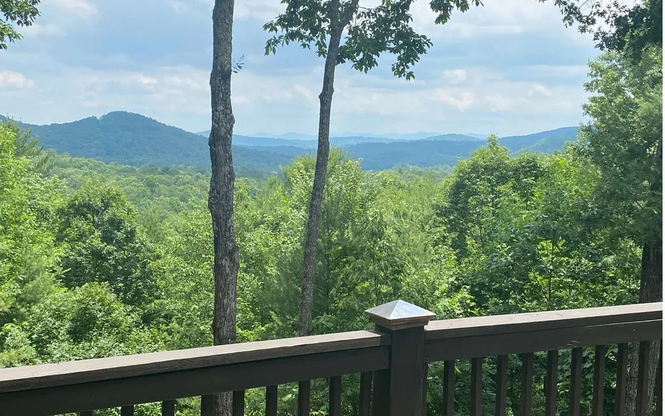 "Treasure in the Trees" is the PERFECT COMBINATION. Prow Design, Beautifully Furnished, LONG Range MOUNTAIN Views (NO steep climbing) in a GATED Community w/Common Area (2) Common FISHING PONDS & Hiking TRAIL. "Entry" Party Porch w/Exterior "Wood Burning" Fireplace leads into the Huge GREAT ROOM (ALL GLASS PROW).Spacious Dining & Living Areas w/Stone Fireplace. Fully Stocked Kitchen features Tile Countertops & Backsplash. Main Level Bath features FULL Ceramic Tile Shower, Tile Flooring & Full Size Laundry Closet. Main Level Bdrm has access (via Pocket Door) to Bath & Access to "Private" Side Porch. Upper Level "Reading Loft" & 2nd Master Suite w/Walk in Closet, Jetted Tub, Double Vanity, HUMONGOUS Tile Shower (Double Heads & Seat) & Private Porch w/Mnt. Views (Interior Wall "Opening" to SEE the Mountains thru the Prow from the Bed). Finished Terrace Level w/Bonus Family Rm, 3rd bedroom &...