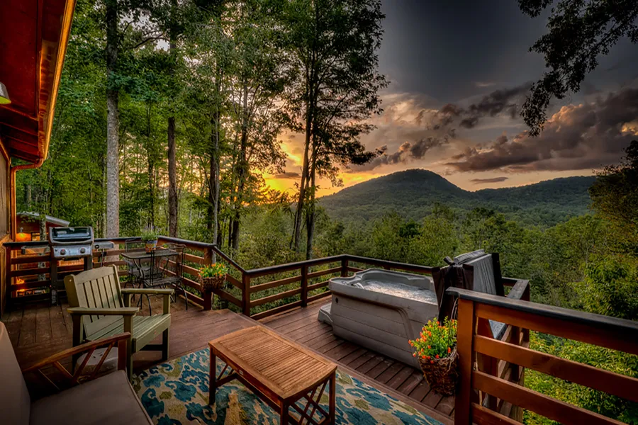 Scenic solitude in Mineral Bluff, Blue Ridge is the perfect oasis away from the city. This cabin is true perfection and exudes the warm and cozy environment one expects in the mountains. The cabin is situated on 4.5+/- private acres and offers a breathtaking year-round mountain view. The 4.5 Acres includes a separate buildable lot...sell it for income, build another cabin or keep the additional land for serenity and privacy. Hang out with guests on the oversized screened cedar porch to catch fall football on the big screen; curl up in the great room with a book in front of the fireplace; soak up the mountain view while relaxing in the hot tub; or enjoy happy hour at the fire pit - this escape offers total privacy and serenity for you and your guests! This unique property offers the main cabin (with one bedroom and bathroom) along with a detached guest cottage offering an additional bedroom and bathroom. The main cabin features a wide open living room with cathedral ceilings, a fireplace and French doors leading to both the screened porch and the back view deck with a hot tub. The kitchen features custom cabinets, granite counters, stainless appliances & a dining table. The open concept offers great flow out to both the grilling & hot tub deck and the screened porch. The spacious bedroom features French doors leading to the deck and lots of light. The charming, detached cottage offers wonderful privacy for your guests. Total of two bedrooms and two bathrooms. The property is furnished to perfection and is sold fully furnished and turnkey. It is located on a ridge in desirable Mineral Bluff yet only a few miles from the heart of downtown historic Blue Ridge. Welcome home to your mountain getaway!