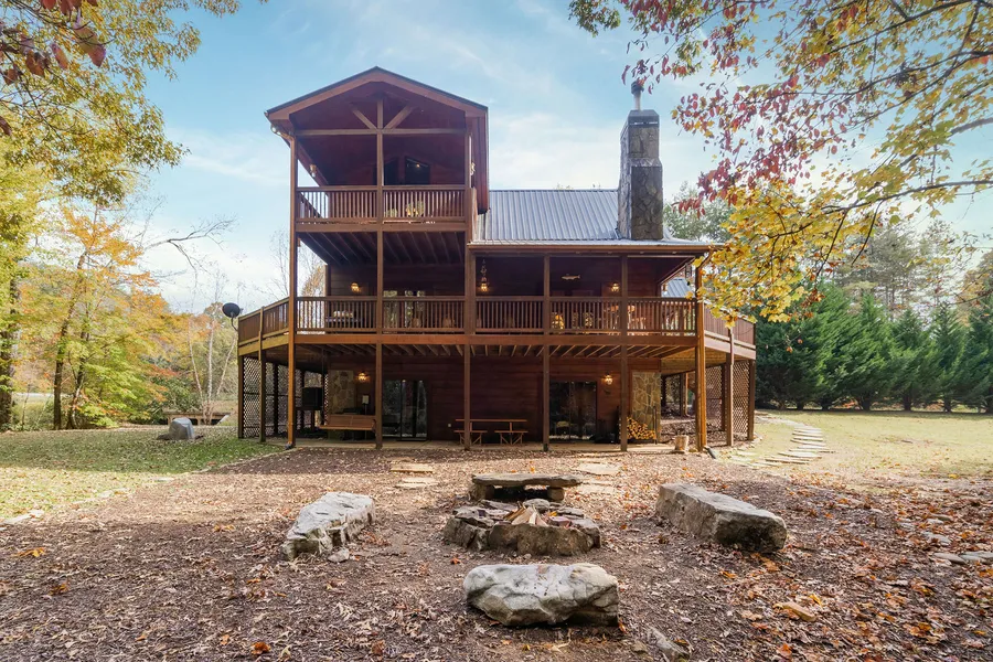 Welcome to The Wandering Wilscot Lodge... where you are surrounded by 500 acres of United States Forest Service ( USFS) and 678 feet of rushing Wilscot creek frontage with no restrictions! A place truly like no other... the grounds are gentle so you can step into the creek at any point on the property, wade across the creek and hike the USFS to Lake Blue Ridge, sit on your deck and take in the fall foliage and the waterfall across the water, and host all of your family and friends on the perfect lawn that runs along the creek bank. Being surrounded by National Forest, you won't have any neighbors and you're still just ten minutes from Downtown Blue Ridge on all-paved roads! Inside on the main floor is the an open-concept kitchen/dining, living area with a wood burning fireplace, the primary suite, and 100 year old reclaimed pine floors throughout and a covered wrap-around deck. Upstairs you'll find another primary suite with a private balcony and bunk room for the kids. The terrace level contains another living area, bedroom and bathroom all with acid stained concrete floors for easy upkeep and added character. Open the doors and you're just a few steps away from the fire pit and the rushing creek. A meticulously kept and maintained home and the perfect piece of land... this one is truly a mountain gem like no other!