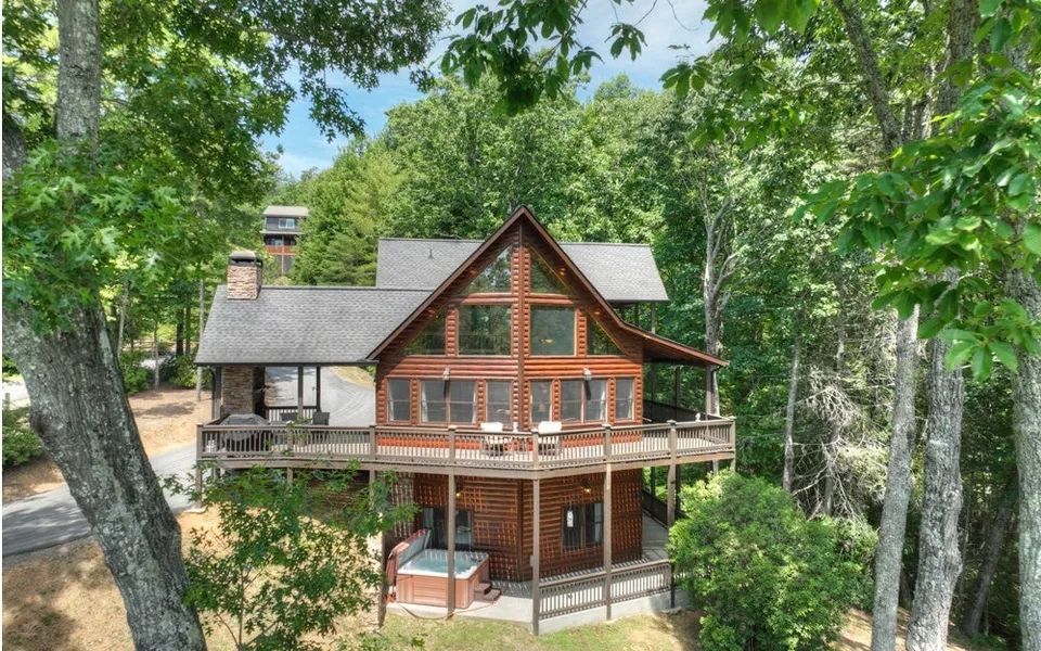 LONG Range MOUNTAIN Views with NO steep climbing in an Impressive GATED Community w/Common Areas (2) Common FISHING PONDS & a Hiking TRAIL. Located so close to the entrance to the Largest Wilderness Area this side of the Mississippi. ALL Paved Access w/an EASY "Entry" Party Porch w/Exterior "Wood Burning" Fireplace leading into an ALL Wood GREAT ROOM w/a WALL of GLASS (PROW) & Stone Fireplace. Open Concept w Plenty of Dining Space. Kitchen/Baths feature brand NEW GRANITE Countertops. Main Level Master w/access to Full Bath (features FULL Ceramic Tile Shower, Tile Flooring & Full Size Laundry Closet) & Direct Access to Covered Porch. Upper Level "Reading Loft" & 2nd Master Suite w/Walk in Closet, Jetted Tub, Double Vanity & a "Gigantic" Tile Shower (Double Heads & Seat). Private Master Porch w/Mnt. Views (Interior Wall "Opening" to SEE the Mountain View from Upper Master). Finished Terrace Level w/Huge Bonus Family Rm, 3rd bedroom & 3rd Full Bath. Terrace Concrete Patio w/Hot Tub & Plenty of Seating Area. Rustic "Hand-Hewed" D-Log Siding,Cedar Shake Gables, "Dry Stack" Rock Foundation & ROCK Retaining Wall. Easy Paved Circular Driveway. All Paved Access. Impressive Entry Gate & Common Areas.