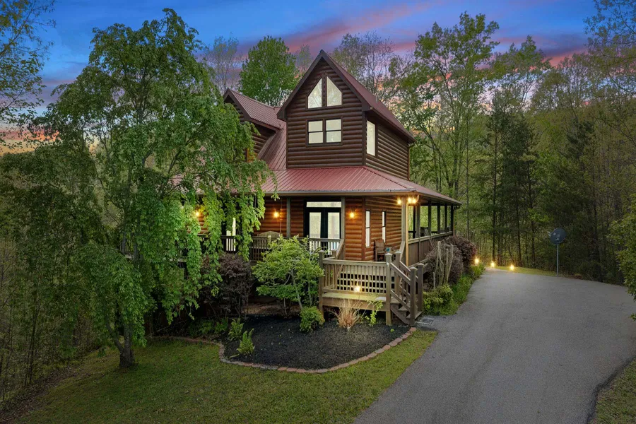 Nestled in a serene woodland setting less than five miles from downtown Blue Ridge, this charming 3BR/3BA cabin offers a perfect blend of rustic charm, mountain views and end of road privacy. As you step inside, you're greeted by soaring cathedral ceilings and large windows that frame breathtaking year-round mountain views. Whether you're unwinding in the living room, enjoying a meal in the dining nook, or preparing dinner in the fully equipped kitchen featuring granite countertops and modern appliances, you'll appreciate the seamless flow of this floor plan. The cabin boasts three comfortable bedrooms, each offering a peaceful retreat with easy access to a well-appointed bathroom. Outside, a spacious deck invites you to relax in the soothing waters of the hot tub while savoring the fresh mountain air and scenic vistas. Three stone fireplaces are perfect for entertaining or simply enjoyi...