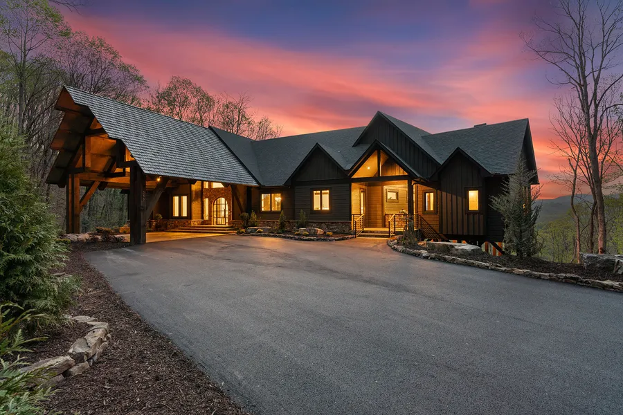 Nestled amidst 4.33+/- acres of pristine mountain landscape, this exquisite estate offers a harmonious blend of opulence and natural beauty. Boasting five bedrooms and five and a half baths, this sprawling residence is a sanctuary of comfort and sophistication. Upon entering, a grand foyer welcomes you, setting the tone for the lavishness that lies ahead. Vaulted ceilings, adorned with a striking wall of windows, frame breathtaking panoramic views of the majestic mountains, infusing the space with an unparalleled sense of awe. The heart of the home is the spacious kitchen, a culinary masterpiece equipped with Viking appliances, an extra-large center island, coffee bar and a butler's pantry. Adjacent to the kitchen is the dining area, perfect for hosting intimate gatherings or grand celebrations. The great room beckons with a custom rock fireplace, creating a cozy ambiance for relaxation ...