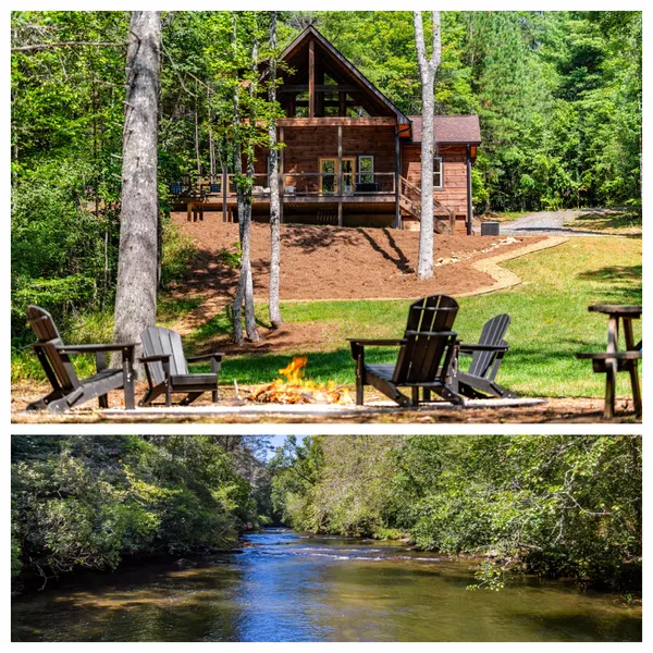 Enjoy the best of waterfront living in this beautifully crafted, recently constructed cabin. This charming home boasts 150+/- feet of frontage on the wide, rushing waters of Fightingtown Creek. Step inside to be greeted by the beautiful stone fireplace, cathedral ceilings and a spacious open floor plan that invites natural light and offers breathtaking views of the creek. Custom tile showers add a touch of luxury to the bathrooms, while the kitchen showcases leathered granite countertops that complement the rich hardwood flooring throughout the home. This two-bedroom, two-bath cabin features an expansive loft with a game room and bunk area for guests. Outside, a gentle path leads you to the creek, where a fire pit awaits. Spend evenings gathered around the fire, while the kids swim and fish just steps away. With underground utilities ensuring unobstructed views, this cabin is both a nature lover's and a trout fisherman's paradise. Located less than five miles from the charming town of McCaysville and just a 15-minute drive to the bustling attractions of Blue Ridge, this property offers the perfect balance of seclusion and accessibility. With its fully furnished interior, fast internet, and beautiful surroundings, this cabin is the perfect destination for anyone looking to get away from it all and enjoy some well-deserved relaxation. This is the perfect opportunity to own a slice of heaven on Fightingtown Creek!