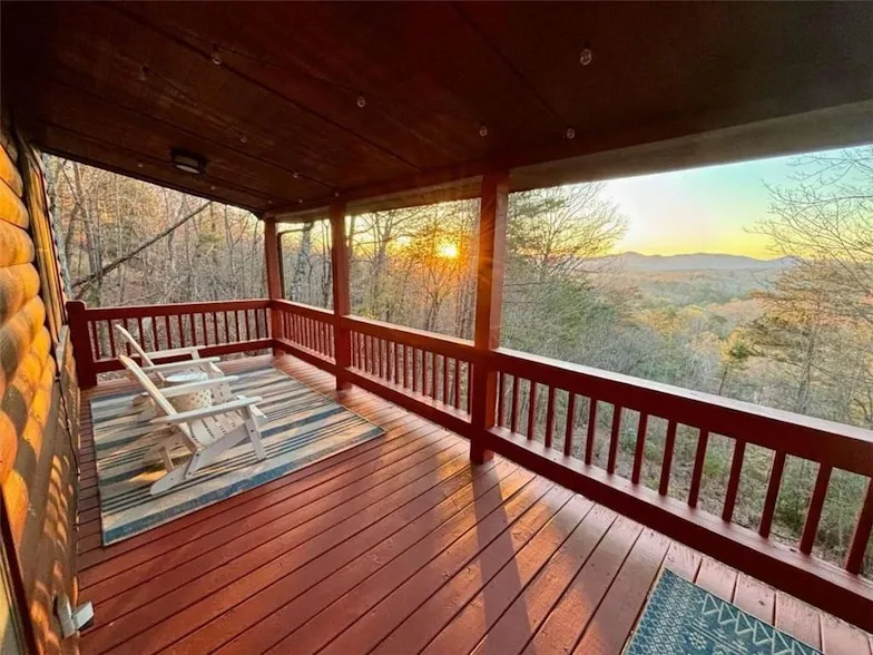 Nestled in the Heart of the Aska Adventure Area of Blue Ridge, GA, this stunning mountain cabin offers breathtaking long-range views of the sunrise from every level and only a 2 mile drive into Downtown Blue Ridge. With three bedrooms, three bathrooms, and an additional bunkroom on the terrace level, this home provides the perfect blend of rustic charm and modern comfort. Each bedroom, along with the family and living rooms, showcases sweeping mountain vistas, while expansive porches on all three levels invite you to relax and take in the beauty of the North Georgia Mountains. The upper-level master suite is a true retreat, featuring a renovated bathroom with a classic clawfoot tub and a private patio where you can sip your morning coffee while soaking in the view. On the main level, the updated kitchen features solid surface countertops and stainless steel appliances, seamlessly flowing...