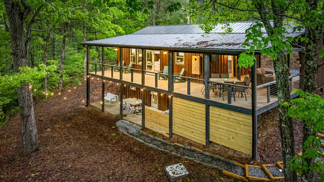 Modern Rustic Retreat in the Heart of Mineral Bluff, GA - Turnkey Short-Term Rental Opportunity Welcome to your dream escape in the North Georgia mountains! This fully furnished three bedroom, two bathroom modern rustic cabin is tucked away in the peaceful woods of Mineral Bluff and offers the perfect blend of charm, comfort, and investment potential. Step inside to discover a thoughtfully designed open floor plan featuring vaulted wood ceilings, a chef's kitchen with quartzite countertops, sleek black cabinetry, stainless steel appliances, and a large island ideal for entertaining. Natural light pours through large windows and French doors that open to a spacious covered deck with treetop views- an inviting space for morning coffee or evening wine. Outdoors, guests will love the fire pit with Adirondack seating, the lower-level patio with a cozy porch swing, and a private hot tub nestled beneath the trees. This property offers total tranquility, yet is just minutes from Blue Ridge, Lake Blue Ridge, hiking trails, and river adventures. Whether you're looking for a second home, a full-time residence, or a high-performing vacation rental, this Mineral Bluff gem checks every box. Don't miss this rare opportunity to own a profitable slice of mountain paradise.
