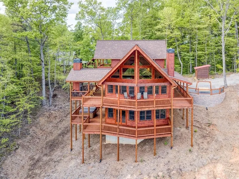 Welcome to Stanley Ridge – A Mountain Retreat with Year-Round Views. Tucked away at the end of the road in the desirable Stanley Ridge community, this beautiful mountain home offers breathtaking, year-round views of Dave's Road Valley and the surrounding mountains. Designed with both comfort and style in mind, this prow front cabin features a spacious wrap-around porch, perfect for relaxing or entertaining while enjoying the stunning scenery. Step outside the dining area to find a wood-burning outdoor fireplace, ideal for cozy evenings under the stars. Inside, the great room is flooded with natural light, thanks to floor-to-ceiling windows that frame the valley views. The living area offers ample seating, making it the perfect place to unwind with family and friends. The custom kitchen is a standout, with one-of-a-kind Poplar Bark cabinetry that adds rustic charm and character. A large dining room provides plenty of space for gatherings and holiday meals. With 3 bedrooms and 3 full bathrooms, this home has room for everyone. The main level bedroom is generously sized, offering space for multiple sleeping configurations. The master suite upstairs features its own private, covered balcony, where you can start your mornings with a cup of coffee and a view. The finished basement adds even more living space, complete with a gas fireplace, expansive windows, and a recreation area perfect for a game of pool or movie night. Whether you're looking for a full-time residence, vacation getaway, or a turnkey short-term rental, this home is thoughtfully designed and move-in ready. Don't miss this opportunity to own a piece of mountain paradise. Call today to schedule your private tour!