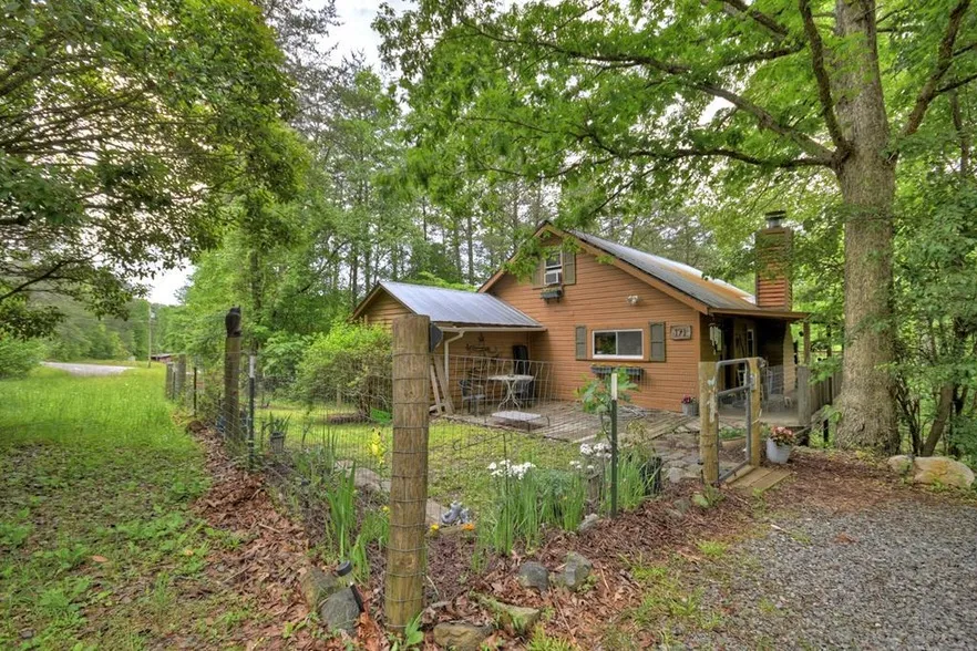 Storybook Cabin on 1.24 Acres for an Amazing Price! Tucked beneath a canopy of trees, this cozy 1930s cottage is filled with vintage charm. Featuring 2 bedrooms, a spacious loft, and 1.5 baths, this delightful home is the perfect rustic and whimsical retreat or full-time residence. Step inside to find a bright and open kitchen with granite countertops, lovely cabinetry, and plenty of room for entertaining. The dining and living areas exude character with original wood floors, warm accents, and large windows bringing in serene woodland views. Outside, relax on the expansive deck or unwind in the fenced patio garden, surrounded by flowering plants and shady trees. There's plenty of space to garden, play, or simply enjoy the peace and privacy of your 1.24-acre slice of the mountains. Need room for guests or hobbies? The upstairs loft makes an ideal studio, playroom, or extra sleeping space. With ample parking, you'll have room for friends, family, and even a camper or trailer. Whether you're looking for a charming full-time home, a weekend escape, or a short-term rental opportunity, this one-of-a-kind property checks all the boxes.