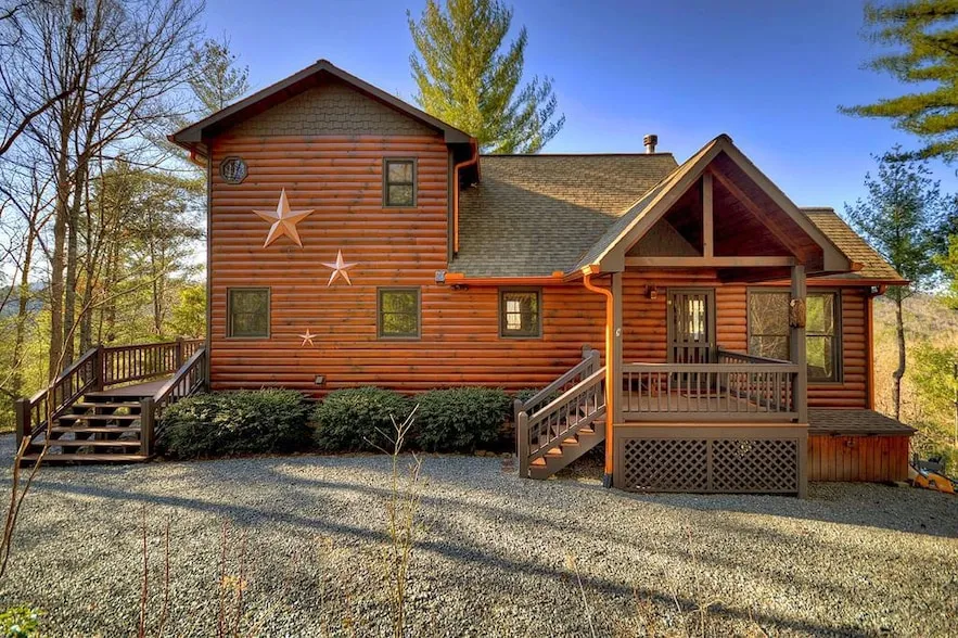 *Established Short Term Rental with Furture Bookings*. Experience Mountain Living in the Heart of the Aska Adventure Area! Nestled in one of the most sought-after locations, this fully furnished 3-bedroom, 3-bathroom vacation cabin offers the perfect blend of tranquility and modern convenience. Boasting breathtaking year-round mountain views, this cozy and secluded retreat is ideal for nature lovers, adventure seekers, or anyone yearning for a peaceful escape. Step inside to a spacious living area anchored by a stunning stone Gas Log fireplace. The primary bedroom offers a private balcony where you can soak in the panoramic mountain vistas, providing the ultimate serene retreat for your mornings and evenings. The terrace level is designed for fun and relaxation. It includes a bunk room, a game room, and a terrace-level porch with a luxurious hot tub an excellent spot to unwind after a day exploring the great outdoors. The backyard completes the experience with a firepit and a level yard area, making it the perfect setting for gatherings with family and friends under the stars. Conveniently located just minutes from downtown Blue Ridge, the Toccoa River, Lake Blue Ridge, Hiking trails to beautiful Waterfalls, and Mountain Biking. This cabin ensures endless opportunities for adventure and exploration. Established rental history allows for a fantastic investment opportunity or the perfect full-time residence for those dreaming of a mountain lifestyle.