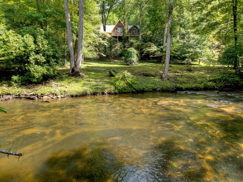 Situated on 1.56+/- acres along the picturesque Coopers Creek in Suches, GA, this 4,000 square foot estate seamlessly blends luxury, comfort and natural beauty. Whether you are looking for a permanent residence or a serene second home, this property offers an idyllic retreat. A whole-home generator ensures year-round comfort and peace of mind. Boasting five generously-sized bedrooms and three well-appointed bathrooms, this home provides ample space for both family living and entertaining. The open-concept main level features a grand living area and a gourmet kitchen, effortlessly flowing into a large deck that offers stunning water views—perfect for outdoor dining, relaxation or simply enjoying nature. The terrace level includes an additional expansive deck and direct access to the creek, where the soothing sound of the creek adds a tranquil ambiance. The lower level is designed for multi-generational living, featuring a self-contained mother-in-law suite with its own kitchen, two bedrooms and a bathroom, providing privacy and comfort for extended family or guests. Coopers Creek is located in one of the most renowned trout fishing spots, feeding into the Toccoa River, offering excellent fishing opportunities. This prime location is perfect for outdoor enthusiasts and anglers alike. Constructed with low-maintenance cypress siding, naturally resistant to insects and requiring minimal upkeep, this home ensures long-lasting beauty and durability. Additional features include a two-car garage on the main level, a one-car garage on the basement level, and a 16x22 building on a concrete slab with a covered porch adjacent to the creek—ideal for use as a bunk house, mancave, workshop or additional storage. This estate offers privacy, natural beauty, and outdoor adventure. Do not miss out on this spectacular opportunity!
