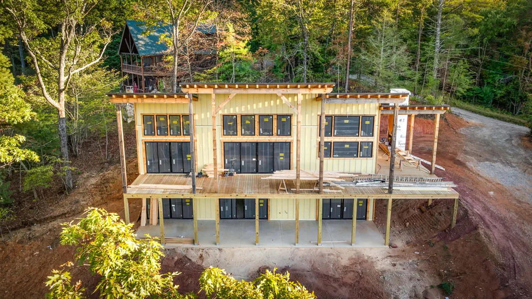Escape to Elevated Bliss: Your 1.9-Acre Mountain Modern Retreat Picture this: You're on a sun-drenched deck with morning coffee in hand, the Blue Ridge Mountains stretching out below like a rumpled quilt of endless ridges-whispering secrets of adventure on the breeze. Step into this new build almost complete four-bedroom, three and a half-bath Mountain Modern retreat on a gentle 1.9 acres, as welcoming as a favorite trail. Fully furnished upon final touches, it mixes rustic wood charm with modern polish, perfect for relaxed days and evening bonfires under the stars. Inside, gleaming hardwood floors run through warm wood accents and clean drywall walls. The kitchen is a cook's dream-high-end appliances, granite counters for easy prep, custom cabinets with plenty of storage, and a walk-in pantry for all your essentials. It opens to a large dining area for family meals, flowing into the great room where a gas log fireplace warms the space, and a wall of windows showcases those long-range mountain views. Outside, the spacious deck features an exterior fireplace for cozy nights and s'mores. The gently sloping yard is ideal for adding a pickleball court, mini-golf setup, or pool. The terrace level is your private escape: A cozy den/media room with a wet bar for mixing drinks and settling in for movie nights, a second primary bedroom with its own serene retreat space, and two guest bedrooms connected by a shared bath that's spa-like with soothing fixtures and plenty of light. Just 5 miles from downtown Blue Ridge's shops, breweries, and trails, this home is your gateway to mountain fun-every sunset a reminder of life's simple highs. Ready to swap city stress for this near-ready peak escape?