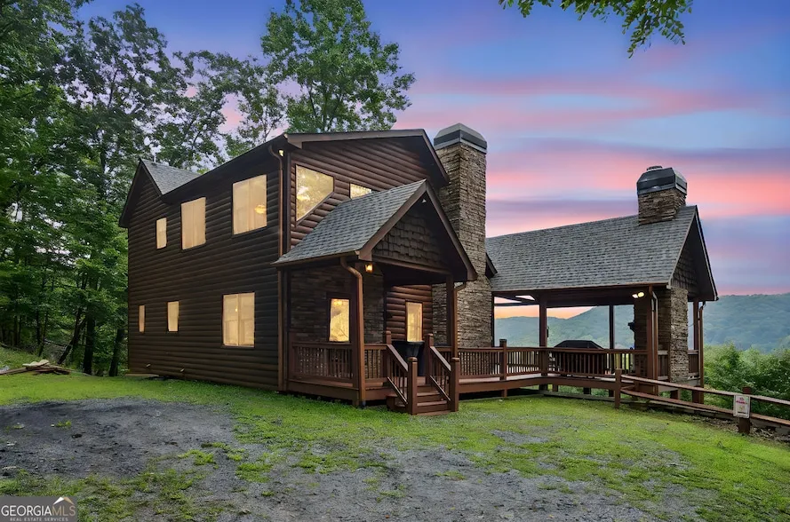 Imagine waking up to the crisp mountain air, with a private balcony just through your French doors, overlooking a serene, wooded landscape. Rental income when you aren't personally enjoying the mountain is the perfect way to offset your mortgage. This charming cabin-style home in Morganton, GA, offers the perfect blend of rustic elegance and modern comfort, providing the ideal escape from the everyday hustle. The main level welcomes you with a cozy great room, centered around a beautiful gas log fireplace, perfect for relaxing evenings. The adjacent kitchen, with its warm wood-stained cabinets and sleek granite countertops, offers a comfortable space for preparing meals. The breakfast area, just off the kitchen, is an ideal spot to enjoy your morning coffee or evening dinners. The main level bedroom, featuring French doors that lead to the back porch, provides a peaceful sanctuary. The b...