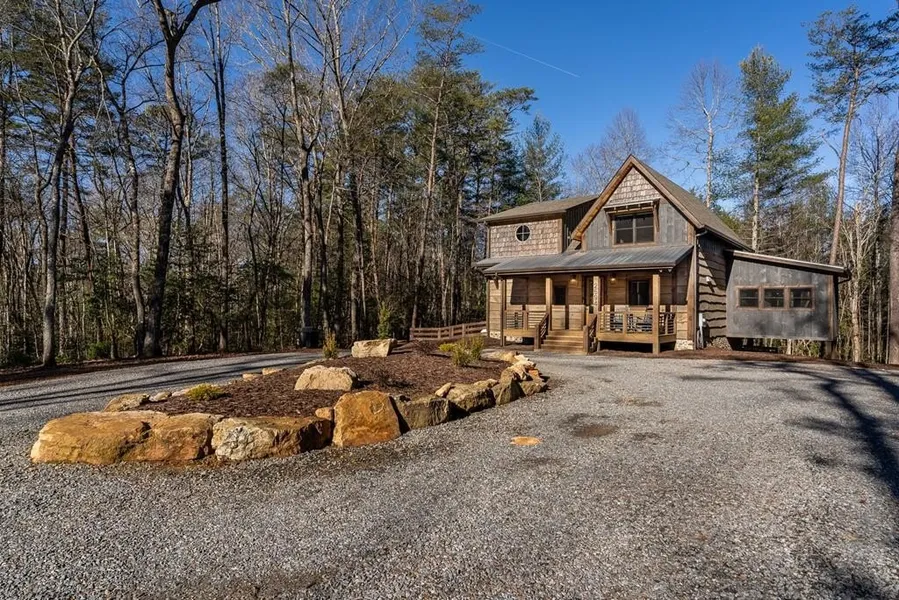 Quality construction in the scenic Blue Ridge Mountains of Georgia, this Eye-Catching Cabin offers over 2,300 square feet of rustic harmony, perfectly designed for those seeking Peace without sacrificing modern comforts. Ideally situated on 2 acres of level land, the property features ample parking and beautifully landscaped surroundings that blend seamlessly with the whispering pines typical of the North Georgia mountains. Its prime location offers easy access to the vibrant local town while providing a serene escape into nature, where you can truly appreciate life's simpler pleasures. Step inside to discover an open floor plan that harmonizes rustic colors with modern accents, showcasing a fully custom wood interior complemented by stylish metal elements. The dedicated dining space comfortably accommodates eight, making it perfect for gatherings. The centerpiece of the living area is a two-sided fireplace that effortlessly creates a cozy atmosphere, whether you're entertaining guests or enjoying a quiet evening at home. Crafted with care by a local builder, this quality home features a custom kitchen equipped with a gas stove, merging functionality with rustic charm for your perfect mountain retreat. The oversized bar area showcases upgraded granite and provides ample space for entertaining, allowing guests to mingle while remaining connected to the heart of the home. With the living room centered around a cozy fireplace and TV, this layout is perfect for gatherings. On those comfortable, climate-friendly days, open the expansive wall of windows to invite the outdoors inside, creating a seamless blend of nature and comfort for everyone to enjoy. The outdoor space is equally inviting, featuring a spacious area with a fireplace, ideal for year-round enjoyment. The level grounds provide a safe play area for pets and children, while a large fenced section with a fire pit enhances your outdoor experience. This unrestricted land presents endless opportunities.