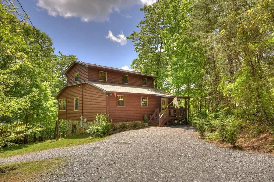 Charming & immaculate, end-of-the-road rustic 3/2 with long-range mountain view and less than 5 miles from downtown Blue Ridge. So cozy & comfortable you'll fall in love with it as soon as you walk in. On the main level: Spacious kitchen, living room with 80K BTU gas log fireplace, sun room w/mountain view, master bedroom & bath, and grilling porch off sunroom (propane line to grill). 2 Bedrooms and bath on upper level. Majority of terrace level is unfinished (used as storage now) but includes a lovely "Flex" room (now a "Man Cave") that could be a 4th bedroom and already plumbed for a bath outside the Flex room. Laundry in terrace level. Sitting and view porch off terrace level and access to outdoor fire pit. Plenty of parking and circular driveway. It's a BEAUTY!