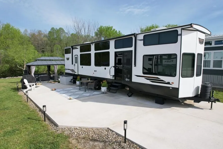 Nestled along the serene, year-round trout-filled Hemptown Creek, this premium move-in ready RV lot in the gated RV/tiny home community offers a perfect blend of natural beauty and modern convenience. Whether you're seeking a peaceful personal retreat or a smart investment opportunity, this property delivers on both fronts. The lot features a spacious concrete pad, accommodating a variety of RV sizes and providing a solid foundation for your home on wheels. A charming gazebo and fire pit area create an inviting outdoor space, ideal for gatherings or quiet evenings under the stars. Flagstone steps lead directly to the creek, offering easy access for refreshing summer dips or trout fishing adventures. While the park model home is not included in the sale, it is available for purchase separately, providing additional flexibility for potential buyers. The rest of the property's features will...