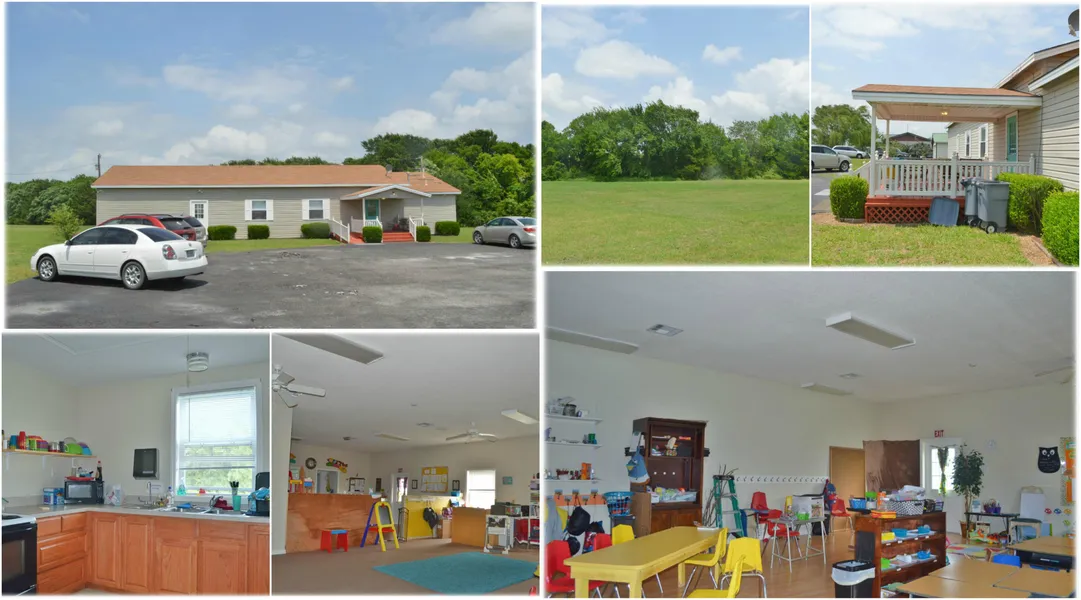 Great commercial opportunity with lots of potential and flexible uses. 2,432 sq. ft. of heated and cooled space on 1.709 acres located on the high traffic Hwy 69. This property is currently being used as a day care center but has an open floor plan with a full kitchen, large rooms, storage and lots of parking area so it could be used for a multitude of other commercial opportunities.