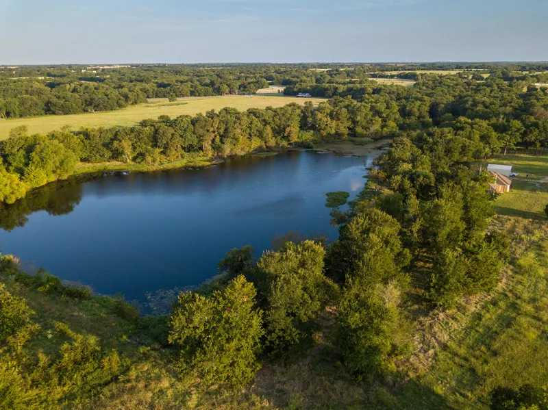 Located at the end of a long gravel driveway, this 1,636 sf country home is nestled among mature hardwood trees including towering pecan trees and overlooks a 4.5 acre lake. Built on 40 acres, built in 2014 is move in ready with clean carpeting, fresh paint, and granite countertops in the generously sized kitchen. Master bedroom suite is isolated includes en-suite bathroom with a big walk in closet. The other bedrooms share a bathroom that's located off the central hallway. One room could be an office, media room formal dining or a 4th bedroom. It also features an eat-in kitchen and a dining room. In addition, a utility room includes ample cabinet space. Covered 2 car carport and a storm cellar completes the yard that over looks the lake. You can sit and watch the fish jump from your living room windows. Located on Highway 121 you are just 45 minutes to Collin County and 30 minutes t...