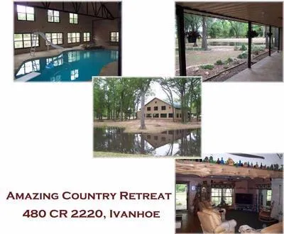 Absolutely fabulous country home on 11.8 incredible acres. Home features a wonderful indoor diving pool & hot tub with water fall, surrounded by a 42'x55' windowed enclosure. Huge porches, rock fireplace and native cedar beams. Steel frame home that has been super insulated for amazingly low utility bills. Secluded on 11.8 acres of oak trees with a stocked pond, livestock barn, work shop. Fish from your front porch! This is a "must see to believe".
