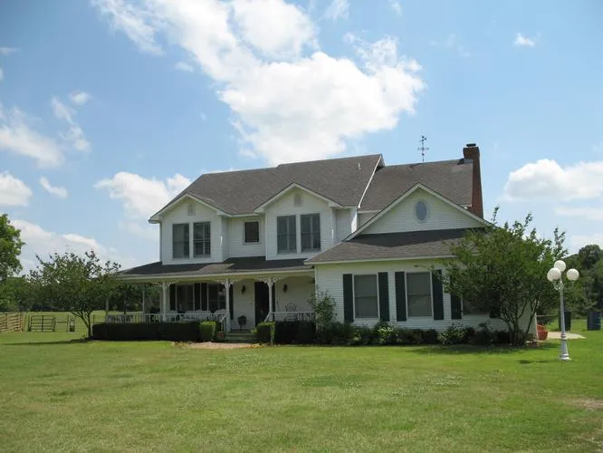 Beautiful 42 rolling sandy acre's with 2 stock ponds, gated entry, 2 story country home with scattered tree's and bermuda grass pastures. The home is a 4 bedroom, 3 and a half bath and a 2 car garage. The entry is a large covered front porch, the flooring is mostly hardwood floor's with carpet and laminate in one of the living areas. The kitchen has tile counted tops, some appliance update's, bay window in the breakfast area and a breakfast bar. The home has 2 living area's with a fireplace, formal dining, breakfast area, stained window accents above the wood stairway, new paint, siding and a covered back porch. The owner has had as much as 25 cattle on the land and now has a few horses, it has a metal shed for the utility tractor or other tools as well as a horse shed with a correl and scattered trees over the property.