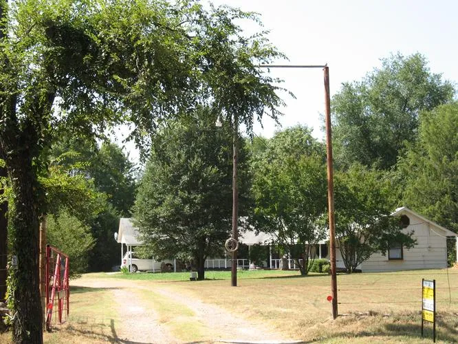 Home was built in 1985 with 2 bedroom and 1 bath. It has a 2 vehicle carport and a 24 x 56 foot out building with electricity, concrete floors and 2 roll-up door's. It has a large covered front porch, wood burning fireplace, several large tree's and a creek ( wet weather ) that runs through the back. Plenty of room for a garden, fruit tree's and/or farm animal's. The home is on an ashphalt road, it's own well water, close to Lake Bonham and some nice home's in the area.