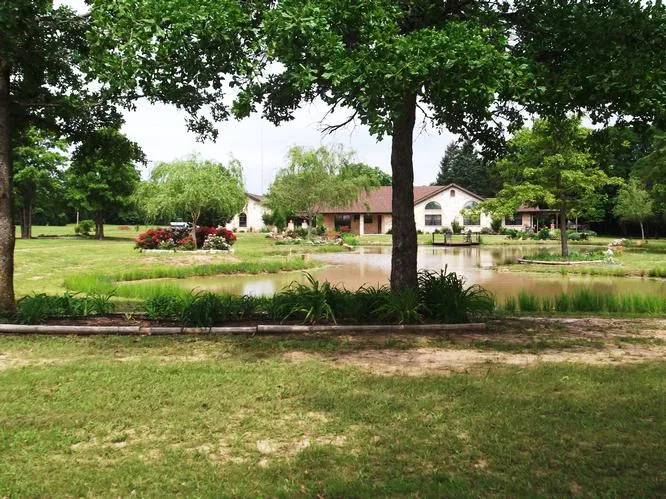 25+ acres of secluded country living. Room for horses or cattle. Turn into the gated property and drive past the beautifully landscaped pond and relax on the deck and enjoy the waterfall and scenery. House is brick-stone with steel framing. The open floor plan is perfect for entertaining. Large kitchen with breakfast bar and cabinet space galore. Designer colors and textured walls. Stone deck, hot tub, porches and beautifully landscaped courtyard. There is a 2 car garage as well as a 23x13 shop.