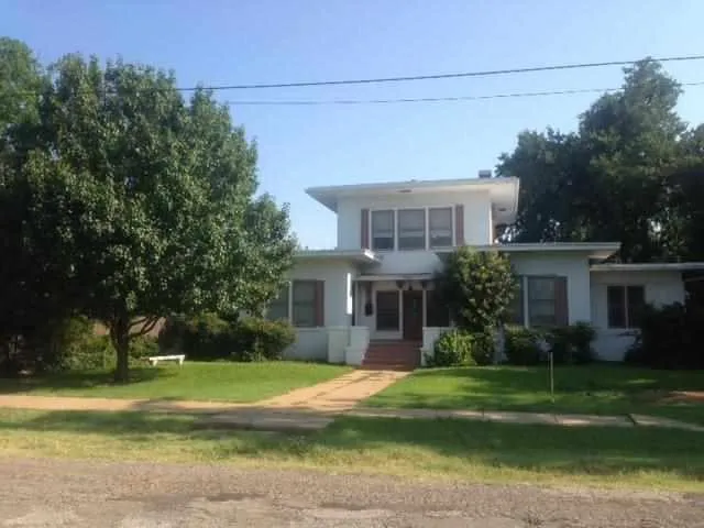 Nearly 100 years old and still standing strong! Beautiful stucco Mediterranean-style home located in small Southern town only an hour from the DFW Metroplex. History and character lend to this 2-story home with parlor, living area and formal dining room. Built-in hutches throughout. Butlers pantry, original hardwood flooring, ornate brick work in kitchen. Basement. Nearly a fenced acre lot with lush landscaping, 2 storage buildings, covered parking. Water well on property per owner.
