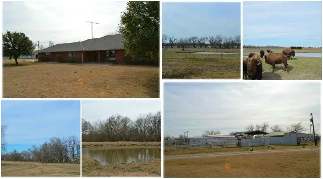 Outstanding working cattle ranch featuring a beautiful brick home, over 7,000 sq. ft. of high quality barns and workshops, 5 large loafing sheds, 7 good ponds, fenced, crossed fenced with excellent fencing and automatic gate openers, storm shelter, horse stable, excellent working pens and chutes, good Bermuda grass pastures, RV storage, storage buildings and 4 fuel tanks. Property includes a nice 16' X 80' mobile home for ranch manager. Additional acreage available. Property can also be purchased with all farm equipment, cattle and a large herd of north American bison (buffalo). This property includes too many improvements to list.