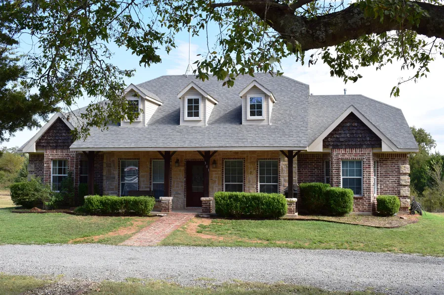 Enjoy quiet country living!! A beautiful steel frame Austin Stone and Brick home with wood flooring in living areas. 2 acre lot w creek. Large land tracts on 2 sides makes a peaceful quiet atmosphere! Its a 4 bedroom 2 bath but office could be a 5th bedroom! Has an eat in kitchen and separate dining room. 2nd floor has a large game room with separate bedroom. A must see just 1 mile from Hwy 78!!