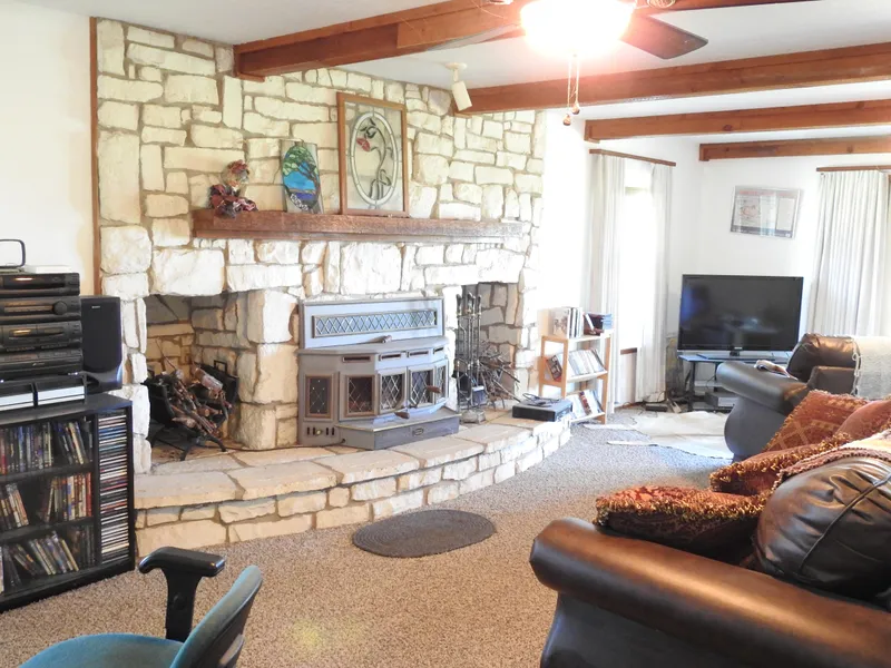 Secluded Country farm house with wrap around front, side and back porches, on over 121 acres of Ag-Exempt pasture and farm land. The house is a two story, 3 bedroom with 2 full baths and a detached 3 car garage with canning room on he South end. The two bedrooms upstairs has a Jack and Jill bath to share and a study nook at the top of the stairs. The larger upstairs bedroom has the second wood burning fireplace in it, both bedrooms are large and have bookcases built in. The downstairs family room has a huge wood burning fireplace that owner says will heat the whole house with room for an office and views of the farm and orchard. The kitchen comes with a stainless steel sink, breakfast bar, dishwasher, disposal, lots of cabinet space and a china cabinet. Breakfast or dining area with more views of the back pasture, barn and orchard. The property has it's own well with depth of between 600 & 800 feet, a 4 stall horse barn, hay barn, utility barn, chicken coop, goat or calf barns, 4 storm or root cellars, 4 pastures and 4 or 5 stock ponds for the livestock, hay meadow just South of the house and a metal green house in the old garden spot and orchard. Many Pecan trees scattered over the property with some huge Oaks as well. Property is at the end of the County Road 3320 and maintained by the County up to the house. Secluded, private and room to do your own thing.