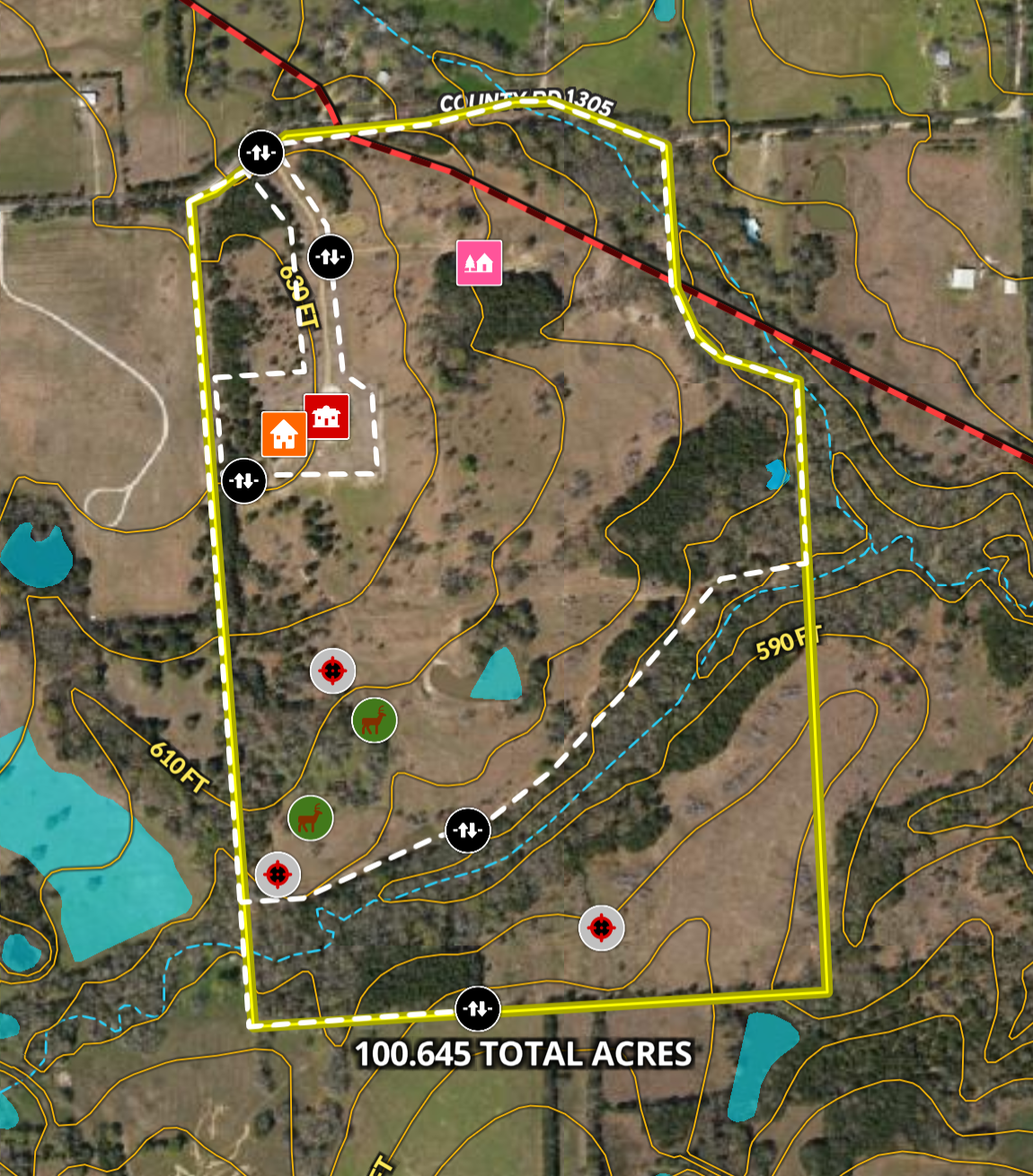Welcome to the L & J Hidden North Fork Whitetails Ranch, an extraordinary estate retreat and whitetail hunting property! Enjoy this secluded ranch as you drive through its stone gated entrance, passing a waterfall. Nestled on a sprawling 100 acres, this property offers a unique blend of natural beauty, luxurious amenities, and a prime location. Conveniently located just one hour from the DFW Metroplex, it offers a peaceful escape from the hustle and bustle. Enjoy the tranquility of both a half-acre stocked bass pond and a catfish pond on the property. This high-fenced ranch holds some of the best genetically documented and managed whitetail deer in the area.
