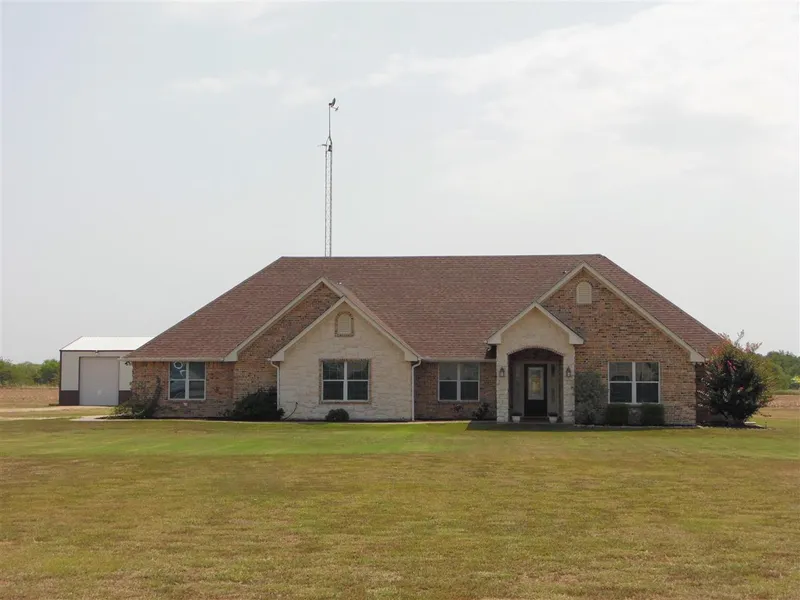 Charming country home in Honey Grove sitting on 10 acres! This home offers 4 bedrooms and 3 full baths. Open inviting living area with tons of natural light adjacent to kitchen, breakfast and formal dining. Kitchen features custom cabinets, electric range, breakfast bar, and spacious pantry with tons of counter space. Master suite with custom cabinets, tub and separate shower. Each bedroom has generous sized closets! Outside there is a covered patio and sidewalks all with stained concrete. 30 X 50 shop with overhead door, electric and water has room for all of your hobbies!