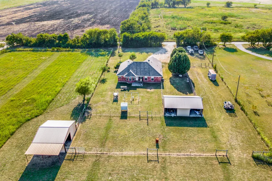 Ranchette all set up and ready for you! From your Chicken Coop to your Workshop w-Electric for all your Tools and Farm Equipment,Metal Building w-Electric and Overhang for your animals to call home.1 Owner 1 Story Brick home features 3 Bedrooms,2 Baths,2 Car Garage.Fenced Back Yard for your pets, Fenced and Crossed Fenced for your livestock.Open Floor Plan,Surround Sound in Living,Split Bedrooms.Master Retreat has separate tub and shower, walk in closet.Wood Burning Fireplace for those cold winter nights.Kitchen and Dining w-beautiful views of your Acreage.So much Love has gone into this Property.Call today for your Private Showing so you can start enjoying the Peace and Quiet of Country Living!
