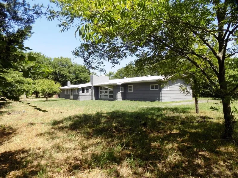 This is a large mid-century modern home recently renovated. Metal roof, siding; recent pier and beam foundation work has transferable warranty. New carpet, ceramic tile, new appliances, new HVAC system with warranty, fresh paint. Very nice spacious floor plan with a huge living room with fireplace, large den with fireplace; dining room, large, eat-in kitchen; huge laundry room with plenty of space to add shelving or more cabinets; enclosed patio with hot tub, large bedrooms and full closets; oversize 2 car garage, 2 carports and a barn. Secluded lot with lots of different trees including Peach and Pecan. Located just out of town square in perfect location of schools, restaurants, grocery, post office and city hall. Small town living in quaint farming community, but progressive enough to offer lots of conveniences. This big home and acre plus lot is a great value.