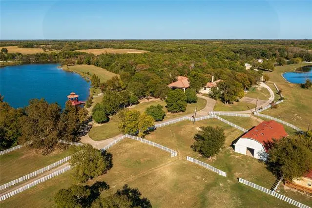 The Flat Iron Ranch is a Dream Estate which has it all, Luxury Living, Privacy, Fishing, Hunting, Horseback riding, Ranching, Hiking, 4 Wheeling and Picturesque Scenery on an incredible 126 Acres. This Gorgeous Mediterranean Home overlooks a tranquil 26 acres stocked lake with a charming gazebo. This Exquisite home with a detail to Workmanship has an open floorplan and oversized rooms, Gourmet kitchen, Master Suite with His and her baths, wine cellar, elevator and 4 guest suites overlooking lake. This Property has a large 5 stall barn, equipment building, oversized corral and 2 caretakers homes and more. An additional 139 Acres available for sale. 45 Minutes to Frisco to Toyota and Dallas Cowboys Headquarters