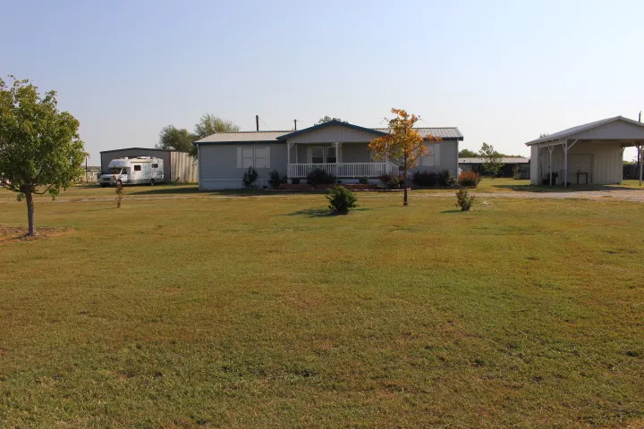 Sunset Village lives up to its name with panoramic views of the western skyline. Located close to the proposed Lower Bois d'Arc Creek Reservoir. Lightly lived-in, well-maintained 2007 28x56 doublewide with 3 spacious bedrooms and walk-in closets, 2 bathrooms, large covered front porch, even bigger back deck to entertain or stargaze, 12' ceilings, custom wood doors, newer flooring, and great natural lighting. Sitting on 1.295 landscaped acres you have a circular driveway along with several covered parking spaces, storage, and a 30'x40' metal shop with electricity and wiring for up to 2 RVs. This home is turn-key & ready for you to settle in soon.