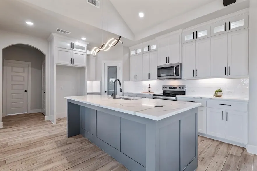 INCOMPLETE Custom-built masterpiece boasts stunning open floorplan with 30X50 Electric Workshop. NO HOA on Acreage. Step inside to find soaring cathedral ceilings, rich wood beams & magnificent quartz stone fireplace. Luxurious master suite offers a spa-like bathroom complete with frameless glass shower sleek modern tile, & dual quartz sinks. Enormous built-in closet provides lots of storage space. Open-concept kitchen, features large walk-in pantry, trendy backs plash, elegant quartz countertops, shaker cabinets that extends to ceiling with glass upper cabinets & back lit lighting. Situated on over 1.396 acres, offering a serene country setting with mature trees, providing plenty of room for kids to play, family gatherings, or relaxing on the huge covered patio. Experience a perfect blend of luxury & tranquility in this modern farmhouse. Built with the highest energy efficiency in mind,...