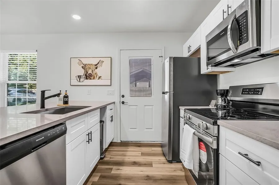 Finally an affordable and stylish new home built with quality! Thoughtfuly designed to bring luxury looks to an afforable price point! Soft close kitchen cabinets, stainless steel appliances, LED lights throughout and ceiling fans in all bedrooms. You won't be disappointed when you walk into the large open living area with eat in kitchen and dining room. Full size laundry room with washer and dryer hookups. Incredible and efficient floor plan with plenty of storage space featuring large walk in closets in 2 of the bedrooms. Large primary suite with private attached full bath and walk in closet. Full size washer and dryer area. Fully fenced backyard which is a rare upgrade for new homes in this price range. Next to several neighborhood parks and a large green space.