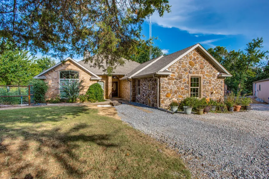 Amazing 32 ac fenced property features beautiful flower gardens, trees, wildlife, pasture, large stocked pond, and a 3 BR 2 Bath custom home located a short distance from new 16,600 ac Bois d'Arc Lake. Private internet tower provides fast wireless internet service. New owner will receive compensation at closing to purchase kitchen cabinets, countertops, dishwasher, sink and faucet. Flooring throughout is decorative porcelain tile. LR has fireplace with gas logs. Family room provides extra space for activities or home schooling. Other features include carport shop combo, a 24X48 Ameristall Shedrow 2-stall horse barn, hay room, tack room, paddock and animal wash rack. Back 16 ac has private entrance & shop.