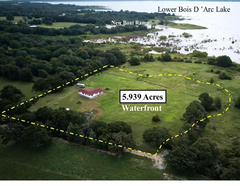 North Texas Municipal Water District has approved a boat dock to be added to this shore line of this 5.939 acres Lake front property. New survey confirms 5.939 acres. This acreage is at the end of the road w land facing the Bois d'Arc Creek Reservoir & cove on the East & South side of the property that is overlooking the lake. North Texas Municipal Water District can approve a 5 year lease for your plans to use their Easement between you & the lake for your recreational activities. The property has a water meter, electric meter, Propane Tank & an electrical connection to a travel trailer or motor home. The house remolding is down to the studs inside and is not tied to the foundation. There are 2'x 2' concrete beams with extra rebar under the house. Currently it is sitting on blocks, it is a 3 bed 1 bath structure. New survey is available. Bring your plans to make this your dreams come true. THE PROPERTY WILL BE SOLD AS IS, and the seller will not make any improvements. Enter this Property at your own risk.