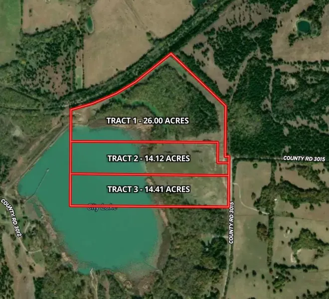 REAL PROPERTY: 54.53 Acre property located on the shore of the 64ac City Lake. Sells divided in 3 Tracts. Prospective Buyers have the option to buy any tract, any combination of tracts or buy all 54.53 acres. Tremendous development potential, extremely private, incredible homesite locations, great views. Enjoy living in the country with shopping, dining, recreation, and entertainment just minutes away. Located less than 5 miles from Bonham Downtown Square with easy access to major highways.
