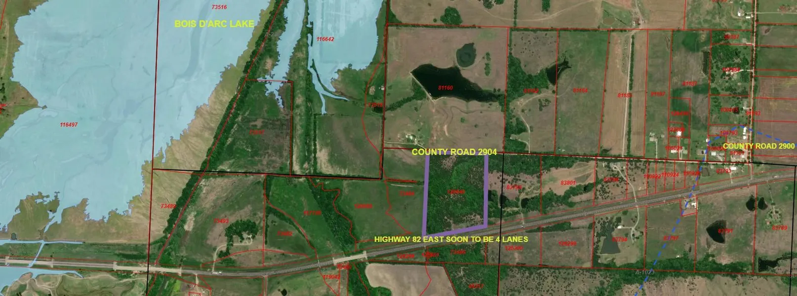 LOCATION LOCATION LOCATIONS!! THIS SECLUDED PROPERTY SITTING ON A HILLTOP HAS BEAUTIFUL MATURE TREES AND AN BIRDS EYE VIEW OF THE COUNTRY AROUND IT. JUST 5 MINUTES EAST OF BONHAM YOU HAVE QUICK ACCESS TO ALL BONHAM HAS TO OFFER! THE NEW 16,000 SQUARE FOOT LAKE IS ALSO JUST MINUTES AWAY. LEGACY RIDGE GOLF COURSE IS WITHIN SIGHT SO THAT WEEKEND GOLF GAME OR FISHING TRIP TO THE LAKE IS JUST MINUTES FROM HOME. THE PROPERTY HAS US HIGHWAY 82 FRONTAGE AS WELL AS COUNTRY ROAD 2904 FRONTAGE. THE POSSIBILITIES ARE ENDLESS. YOU CAN BUILD YOUR OWN HOME CLOSE TO TOWN AND STILL ENJOY THE PRIVACY OF THE COUNTRY ATMOSPHERE OR DEVELOP THE PROPERTY.