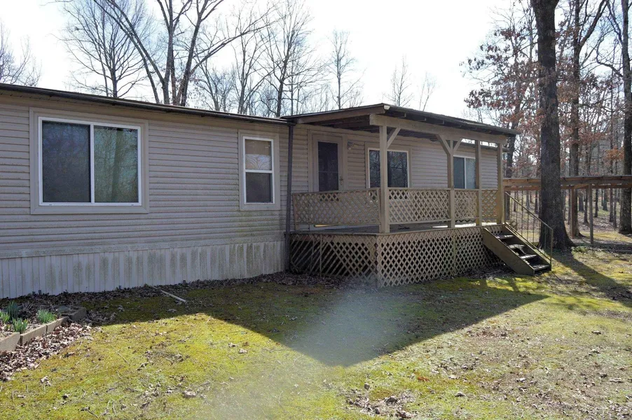 3 br 2 ba doublewide mobile home on 8 gorgeous acres. Sit on your porch and watch the deer and wildlife! This acreage has a perfect building spot as well. You could live in the mobile home while you build your dream home. The home was recently occupied and everything works but it could use some updates. There is a storage building as well as 2 covered areas for parking. Country living while close to the interstate and city life. Mobile home is being sold as is!~ Agents see remarks.