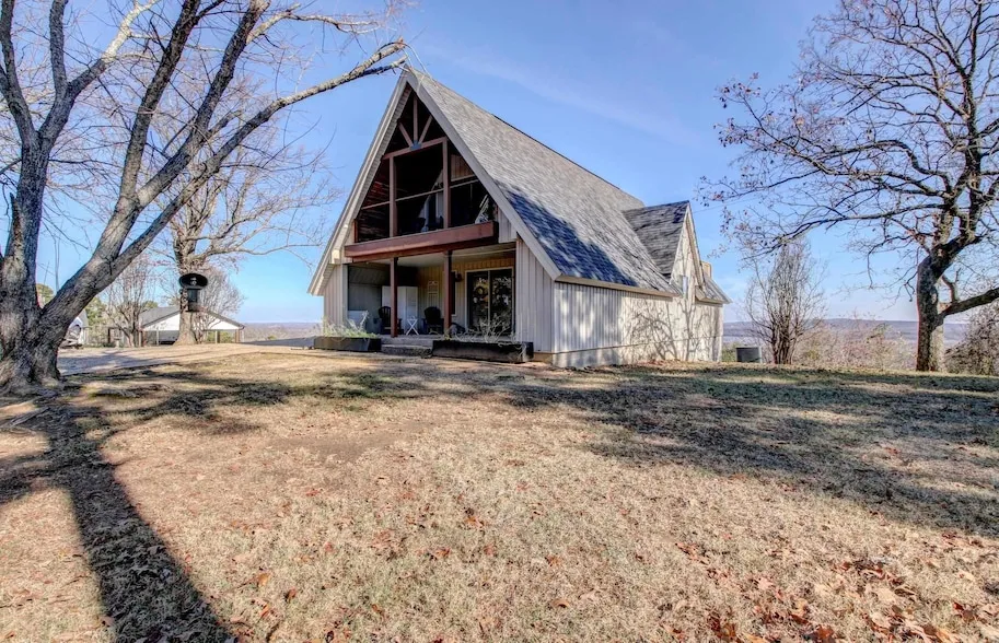 Charming A-frame home with panoramic water views for miles! This updated gem is full of character and sits on approximately 3.8 acres. Features include an open floor plan with a cozy living/dining area and an updated kitchen showcasing freshly painted cabinetry, granite countertops, stainless steel appliances, gas cooktop, farmhouse sink, and updated lighting/fixtures. The main level offers 1 bedroom with a full bath and access to a covered deck. Upstairs, you ll find 2 bedrooms and 1 full bath, including a vaulted-ceiling bedroom currently used as the Primary Suite with breathtaking views from its private deck. The guest bedroom also has a covered deck, perfect for enjoying serene surroundings. Extras include 3.8 acres, a shed with electricity, and a spacious side yard for gardening or relaxing by the firepit. Roof replaced in April 2021. So much charm and potential! Agents, see remarks regarding offers. Don t miss this one-of-a-kind home!