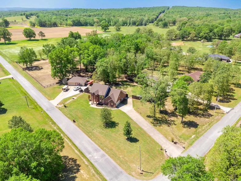 Discover tranquility in Conway's Majestic Valley Estates with this stunning 2-story traditional home, offering a blend of country living & city convenience minutes away. Custom-built w/Tuscan design influences, the interior boasts exquisite brick features in the formal dining & kitchen areas. A spacious great room w/built-ins sets the stage for relaxation, while the kitchen features stainless steel appliances, granite countertops, gas cooktop, wall oven, & a walk-in pantry. The main-level primary suite dazzles with a luxurious ensuite featuring a large custom-tiled shower, jetted tub, double sinks, & a spacious walk-in closet. A 6x6 storm shelter adds peace of mind. Upstairs, find spacious guest bedrooms with walk-in closets & a second primary suite or perfect for teenagers. Step outside to a covered patio with a tongue & groove ceiling & wood-burning fireplace, overlooking the sprawling 3-acre property. A 26x40 shop/3 Car Garage with electricity, window A/C units, & plumbing awaits your hobbies, complete with a tac room for horses & stalls. Fully fenced pasture & a large fenced backyard offer space for farm animals & recreation. Agents see docs