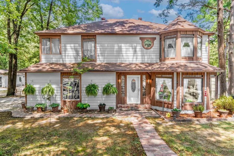 This enchanting Queen Anne–style home sits on 4.91 acres framed by mature trees. The grounds include a year-round pond, fenced pasture with barbless wire and wood fencing, and garden space with rich soil and raised beds—perfect for horses, gardening, and small-scale farming. The spacious 2,663 sq ft layout features 8-foot ceilings, generous storage throughout, and insulated Pella windows that fill the home with natural light. Recent updates include a new roof, quartz kitchen countertops, granite in the primary bath, new carpet, new LVT and tile flooring, and an updated walk-in shower. Additional features include an attached two-car garage, a detached 24x30 garage/shop, and a beautiful in-ground pool (new liner, pump, & filter 2023). The home also offers a large screened-in porch and a screened walk-out balcony off the bedroom. Located in the Conway School District, this property offers a peaceful setting with space to enjoy both home and land.