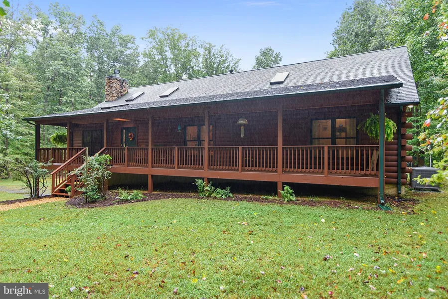 PRIVACY! 12 wooded acres is the setting for this one owner custom log home. Skylights and an abundance of recessed lighting throughout providea bright interior. Vaulted wood ceilings and gleaming wood floors highlight the open floor plan. The floor to ceiling stone fireplace is wood burning. Kitchen w/ center island & breakfast bar has granite & stainless. 2 private rear decks are accessed by Atrium doors from the spacious dining room & a deluxe owner suite. There are two more large bedrooms served by a full bath with skylight. Washer & dryer hookups are installed both on the main level and in the laundry area downstairs. The lower level has been finished as a large open rec room plus a workshop and half bath. Oversized two car garage completes this level.
