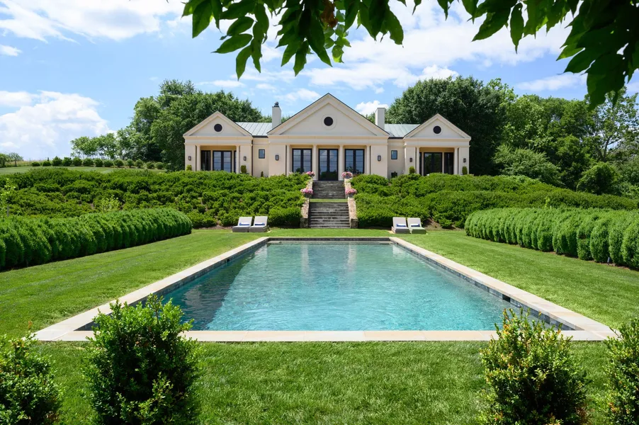 Set on an idyllic five-acre parcel, bordering a 400 acre private estate, this extraordinary Neoclassical Palladian villa offers nearly 6,000 square feet of interior living space and spectacular views of the iconic Blue Ridge Mountains. Originally built in 1997 by esteemed architect Errol Adels, Sageview finished a two-year complete renovation in late 2017. Inside, a magnificent Great Room includes the gourmet kitchen, dining room and two seating areas that overlook the terrace and swimming pool. Each of the property's five bedrooms - including two large ground level master suites - offer ensuite baths clad in floor to ceiling Carrara marble. Additional noteworthy features include an indoor/outdoor Sonos sound system, 10' custom doors, custom oak cabinetry, Miele and Sub-Zero appliances, Italian marble countertops, Lefroy Brooks fixtures and sconces, 180-year-old reclaimed wide-plank floo...