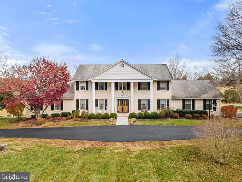 This lovely 4 bedroom, 4.5 bath, brick and aluminium colonial style home on 10 acres awaits its new owner. A covered, 29-foot by 7-foot, front porch with white columns and suspended entry lamp evokes country elegance as you enter through the brick gate posts supporting wrought iron gates. The circular paved drive, which also wraps around to the back of the home, allows for many vehicles, be it a family gathering or company party. The rear of the home is adorned with a 17-foot by 13-foot sunroom which overlooks the close-by in-ground heated swimming pool and the barn with pasture below the home. An exterior deck also abuts the sunroom and has access from the first-floor bedroom and bath living area and the family room.