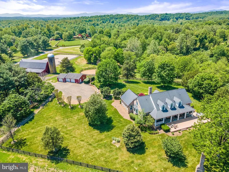 Nestled among the Piedmont's rolling hills, this prestigious property is located in the sought-after Bellevue Farms Equestrian Community, boasting over 30 miles of community riding trails within the Warrenton Hunt territory. This enchanting retreat, just 45 minutes from Dulles International Airport and an hour from our nation's capital, comprises two distinct tax parcels totaling 24.44 acres. Its iconic red barn features impressive attributes including: 4 stalls, automatic waterers, a hot/cold wash stall, a hay loft, a tack room with a private bath, a feed room, an office, and a two-story 1BD/1BA apartment. Also on the property are a riding arena, a round pen, two run-in sheds, and a 3-car detached garage with a workshop. Pass by the charming 1BD/1BA guest cottage and behold the main house exuding warmth and welcome with its beautiful stone exterior. This heavenly haven, overlooking roll...