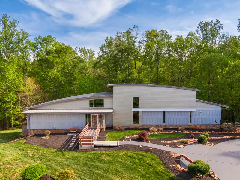 Incredible details prevail throughout the house including a cascading wall of glass, a soaring arched ceiling, an impressive 8-ft long FIREPLACE, a chef's delight gourmet kitchen, luxurious spa inspired bathrooms, and an extensive terrace overlooking a serene, lush forest with meandering stream. Among a long list of improvements are radiant heated floors and automatic window shades on both main and upper levels. For the GARDENING enthusiast, this property presents the opportunity for personal or business production of hydroponic farming with extensive, supporting infrastructure, from filtered water systems to Zip Grow Farm Walls. Approximately 2 acres of recently cleared land awaits a farming or EQUESTRIAN pursuit! There are TWO GARAGES which allow for a multitude of uses, a shooting range, lawn irrigation, and a second, commercial power line. A DETAILED LIST of Special Features is available.